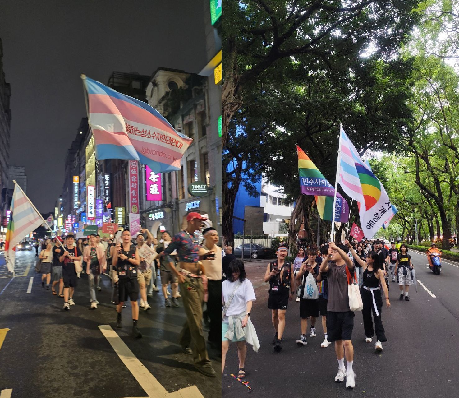왼쪽: 10월 24일 대만 트랜스마치 행진  / 오른쪽: 10월 25일 대만 퀴어퍼레이드 행진